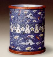 圖片名稱: 天藍(lán)地粉彩云鶴蝙蝠紋干支旋轉(zhuǎn)筆筒