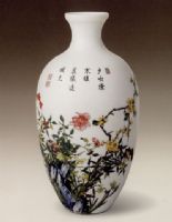說 明: 此瓶上的圖案系宮廷畫家采用工筆技法描繪而成,筆觸細(xì)致入微,色澤富麗清新,帶有雍正琺瑯彩瓷器的遺風(fēng),應(yīng)屬乾隆早期作品.