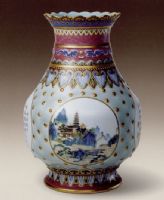 圖片名稱: 琺瑯彩豆青地開光山水圖瓶