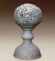 說(shuō) 明: 冠架為放置帽子的器物.此冠架鏤空刀法嫻熟,圖案精美.在冠架的頂部有一小孔,放入香料,可以燃香薰烤帽子,用心巧妙.