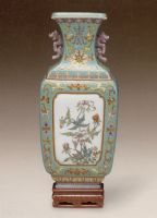 圖片名稱: 綠地粉彩開光花卉紋方壁瓶