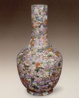 說 明: 這種繪粉彩百花圖的作品始制于乾隆朝,嘉慶朝也較為流行,但傳世的精品卻不多.此瓶制作精工,繪圖精細,是同類器中的突出佳作.