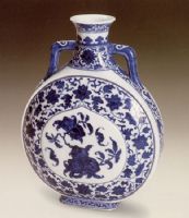 圖片名稱: 青花福壽圖雙耳扁瓶