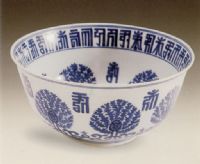 說 明: 景德鎮(zhèn)窯在明代永樂已出現(xiàn)青花梵文裝飾,到清代康熙朝以后,幾乎各個朝代都有生產(chǎn).清代梵文普遍采用藍查體,而由于密宗華教,特別是藏傳佛教在內(nèi)地的流行,使得整個清代梵文書寫特別規(guī)范.