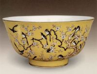 圖片名稱: 黃地粉彩梅鵲圖碗