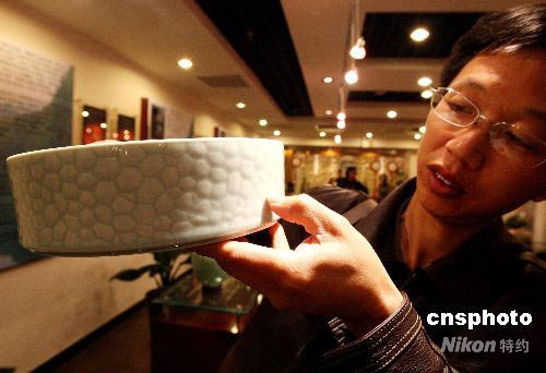 4月25,中國龍泉青瓷珍品展在北京合璧興陶瓷藝術(shù)館舉行,龍泉青瓷以獨創(chuàng)的粉青、梅子青釉色而著稱,龍泉哥窯有“金絲鐵線”之美稱,列為宋代五大名窯之一;而龍泉弟窯則以晶瑩潤澤的青釉聞名天下,被譽為“青瓷之花”。是次展覽是由中國陶瓷工業(yè)協(xié)會及浙江省龍泉市政府主辦,毛正聰、徐定昌、陳愛明等十余位當(dāng)代大師紛紛創(chuàng)作并燒制青瓷作品。圖為珍品《期盼》則以奧運比賽場館國家游泳中心水的立方為設(shè)計藍本,內(nèi)部釉層飽滿晶瑩宛如水波,外部配以水分子外形的紋飾,將浙江龍泉的傳統(tǒng)青瓷文化與現(xiàn)代奧運文化相結(jié)合,形成了人們對水的立方的記憶載體,表達了對奧運的向往和期盼,完全契合北京奧運會綠色、科技、人文的三大核心理念。