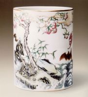 圖片名稱: 粉彩桃樹蝠紋筆筒