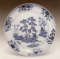 說(shuō) 明: 胎薄質(zhì)細(xì),構(gòu)圖嚴(yán)謹(jǐn),青花濃艷,所繪圖案清幽雅麗,意境深遠(yuǎn).此盤尺寸較大,燒造難成,為永樂(lè)時(shí)期罕見(jiàn)的精品.