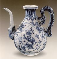說(shuō) 明: 此壺青花藍(lán)中泛紫.圖案更富神韻,造型幽雅別致.是宣德青花瓷器中的精品.