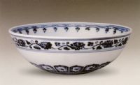 說 明: 此種臥足碗始燒于永樂時期,宣德時繼續(xù)燒造.其造型和紋飾均模仿西亞伊斯蘭國家金屬器.明代萬歷及清代康熙時均仿燒過永、宣青花臥足碗.