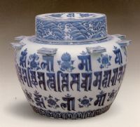 圖片名稱(chēng): 青花梵文出戟蓋罐