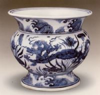 說(shuō) 明: 青花發(fā)色濃艷,深沉處有黑色結(jié)晶斑,具有宣德青花的典型風(fēng)格.