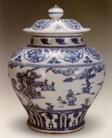 說 明: 造型端莊,裝飾題材別有情趣.釉色青翠光潤,反映了明代中期青花瓷器制作工藝的水平和特點(diǎn).