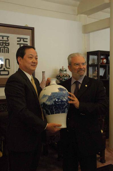 祈愿世界和平,祝福北京奧運。歷時3年,一件由中國國家博物館權(quán)威監(jiān)制,由“當(dāng)代官窯”國家用瓷辦公室、景德鎮(zhèn)珠山畫院制作,中國宋慶齡基金會發(fā)行,中國瓷壇泰斗王錫良、“青花大王”王步嫡親傳人王恩懷、景德鎮(zhèn)珠山畫院院長熊鋼如三位中國工藝美術(shù)大師聯(lián)袂創(chuàng)作的“永久和平”國禮珍藏青花梅瓶燒制成功,并將在全國部分重點城市與公眾陸續(xù)見面。