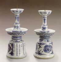 說 明: 該燭臺(tái)雖為民窯制品,但有明確的紀(jì)年,是研究明代晚期瓷器的標(biāo)準(zhǔn)器.此類燭臺(tái)都是寺廟中的供器,成對(duì)出現(xiàn).