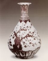 說 明: 此瓶屬當(dāng)時(shí)宮廷享用的器物.釉里紅色調(diào)有的呈深褐色和醬色,這與完美的釉里紅瓷器還有一定的距離,但是作為當(dāng)時(shí)一種典型的器物,此器在整體風(fēng)格上仍具有獨(dú)特的魅力.