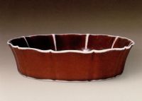 說 明: 此器通體施紅釉,釉面勻凈,釉色鮮艷.口沿與腹壁花瓣出筋處顯露潔白的胎色,與洗身的紅釉形成鮮明對(duì)比,相映生輝.雖無年款,確為宣德紅釉器的稀有珍品.