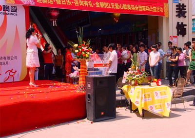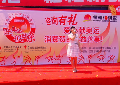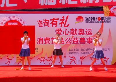 我們搜狐焦點家居網也非常感謝金朝陽陶瓷對我們的工作支持,在這里我們預祝他們的活動圓滿成功,大家都為中國奧運獻出一份愛心,為中國奧運加油!