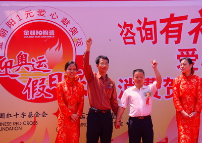 “迎奧運 假日樂”金朝陽1元愛心獻奧運公益活動開啟儀式,與福州圣火傳遞時間同步 ,由搜狐焦點家居網作現場獨家報道.