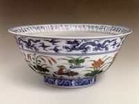 圖片名稱: 青花五彩蓮池鴛鴦紋圖碗