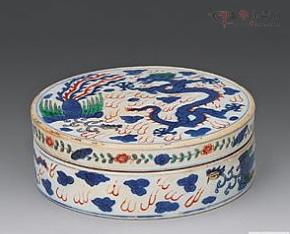 明 青花五彩龍鳳紋瓷硯