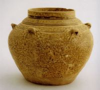 說 明: 體形碩大,施青釉,釉呈黃色,有流釉現(xiàn)象,積釉處呈醬褐色,釉面光亮.造型凝重規(guī)整.