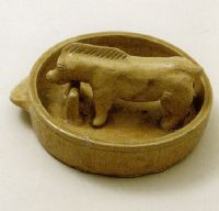 說 明: 施黃釉,釉面開細片.豬身體肥腴,形態(tài)可愛.