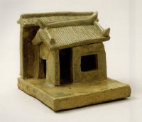 說(shuō) 明: 施青釉,釉色純正.在越窯明器中,以圓形豬圈為多見(jiàn),方形豬圈出土數(shù)量甚少,故彌足珍貴.
