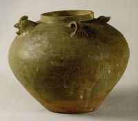 說(shuō) 明: 此器施淡青釉,釉質(zhì)勻凈,腹下露胎呈紅土色.形態(tài)生動(dòng),栩栩如生.系西晉時(shí)期典型器之一.