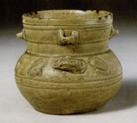 說 明: 通體青釉,口沿點(diǎn)綴褐斑.兩晉時(shí)常用動(dòng)物形象作為器物形體或裝飾物.