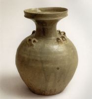說(shuō) 明: 此壺頸肩交接處附有八系,這在東晉時(shí)頗為少見(jiàn).肩部刻劃覆蓮瓣紋,開(kāi)創(chuàng)了此種紋飾的先河.