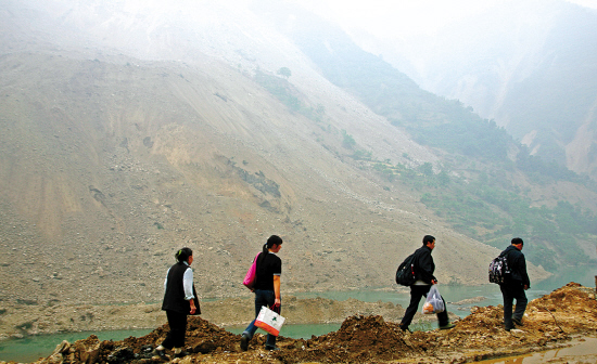 余震,山上滾落下比汽車還大的巨石徹底阻住了道路。