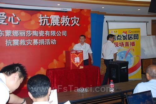 “我們的心跟災(zāi)區(qū)人民是連在一起的,董事會(huì)決定,蒙娜麗莎陶瓷有限公司將向?yàn)?zāi)區(qū)捐款100萬,支援災(zāi)區(qū)人民。”5月16日,在蒙娜麗莎陶瓷有限公司抗震救災(zāi)活動(dòng)現(xiàn)場,蒙娜麗莎董事長兼總裁蕭華熱淚盈眶,用顫抖的聲音向在座的員工宣布了這一決定,得到了在場員工的熱烈響應(yīng)。