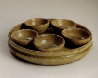 說 明: 此盤為南朝制品,屬五盅盤早期制作階段的產(chǎn)品.盅與盤粘連一體,故不能實(shí)用,是一件專用于墓葬的陪葬品.