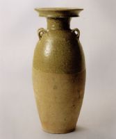 說(shuō) 明: 器物全施半釉,露胎處呈紫色,釉色青黃帶灰,釉中呈現(xiàn)星星點(diǎn)點(diǎn)的奶白色.