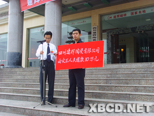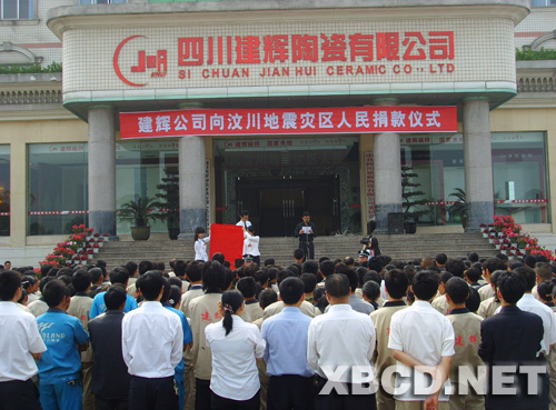 5月16日,夾江縣建輝陶瓷有限公司全體員工集合在公司展廳前,開展捐款活動,向?yàn)?zāi)區(qū)群眾獻(xiàn)愛心。 建輝企業(yè)董事長楊建忠宣讀了倡議書,并向所有災(zāi)區(qū)人民和受災(zāi)情影響的人民致以誠摯的問候。他希望大家發(fā)揚(yáng)“一方有難,八方支援”的精神,伸出雙手,奉獻(xiàn)愛心。公司向?yàn)?zāi)區(qū)人民捐款10萬元人民幣。同時,公司員工也踴躍發(fā)起捐款,希望能為災(zāi)區(qū)人民盡一份心力,以協(xié)助災(zāi)區(qū)人民抗震救災(zāi),活動中,省抗震救災(zāi)檢查工作組一行也參加了捐款,共計(jì)捐款185269元。(完)(王慶)
