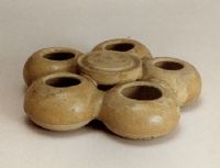 說 明: 此器中間增加盤形硯,其功能與文房用具相關.造型精巧,并非實用,為隨葬的明器.