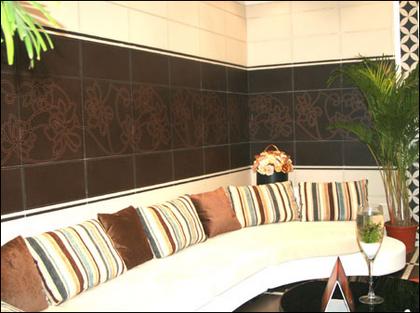 沙發(fā)背后的墻面采用了仿皮瓷磚,很有皮革的質感,上面還有花紋呢 家居與時裝的融合,看來美的東西用在哪里都那么吸引人 走廊里的驚艷 瓷磚鋪上墻的美麗 中國服裝時尚網(wǎng)時尚頻道 瓷磚讓你的會客廳大氣穩(wěn)重 雖然廚房不能貼壁紙,但是有這樣的瓷磚啊