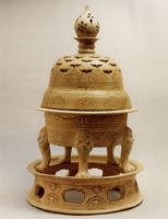 說 明: 此爐為焚香用具,爐形體碩大,造型別致,為唐代越窯青瓷佳品.