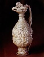 說(shuō) 明: 鳳頭龍柄壺是我國(guó)唐朝初年北方青釉瓷器的杰作,它在造型上吸收了波斯薩珊王朝金銀器中鳥(niǎo)首壺的特點(diǎn),又融合了中國(guó)本土的風(fēng)格,用龍鳳作裝飾,精心燒造而成.