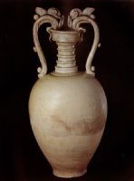說 明: 此類器物形成于隋代,盛行于唐代.通體施白釉,集裝飾性與實用性于一身.
