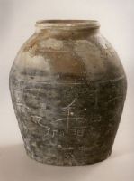 說 明: 輪制而成,火候較高硬,度接近青瓷。器施黃褐色釉,多已剝落。