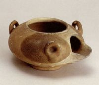 說 明: 該盂小巧精細、裝飾簡樸。長沙窯產(chǎn)品,胚土質(zhì)量較粗,顏色不純,故采用掛釉前施化妝土的技術(shù)。