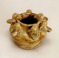 說 明: 胎質(zhì)灰白,器身褐、綠彩點綴。造型精巧,生動活潑,富有動感。