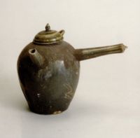 說 明: 胎質(zhì)青灰色,通體施偏藍色的綠釉。整體造型精巧玲瓏,使用方便。