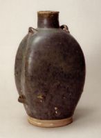 說 明: 胎質(zhì)青灰色,通體施綠釉。此壺釉色晶瑩,造型極有特色,具有西亞器物的風(fēng)格。