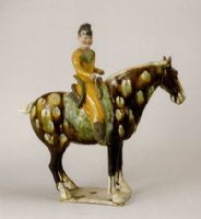 說 明: 此俑為灰白色陶胎,除俑頭、徑及手為彩繪外,周身均施彩色釉。