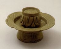 說 明: 由托座、承盤、圈足三部分組成。器表清潤勻凈的釉,使造型端莊的茶托更加雅致。
