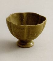 說 明: 通體施釉,釉青中泛黃。器身呈六曲花瓣形。