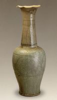 說(shuō) 明: 瓶花口豐肩,瘦長(zhǎng)腹,細(xì)長(zhǎng)徑,矮圈足.通體施青釉,釉層薄而不勻.